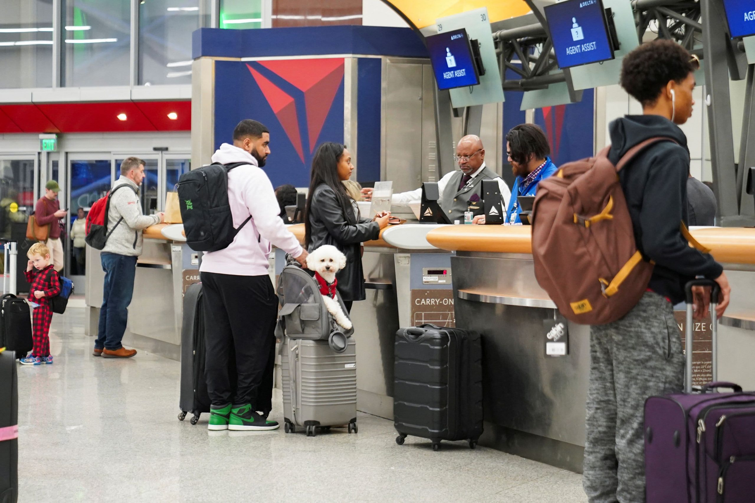People check-in for their flights at the airport ahead of the Thanksgiving Holiday at Hartsfield-Jackson Atlanta International Airport, in Atlanta, Georgia, U.S., November 27, 2024.