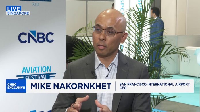 San Francisco International Airport (SFO) CEO Mike Nakornkhet explains how the airport’s model has helped it avoid the TSA staffing crisis at other major US airports affected by the partial government shutdown. Speaking to CNBC’s Monica Pitrelli at the Aviation Festival Asia in Singapore, he also talks about how SFO is well positioned as a gateway for international travel, with Asia a strong area of growth.