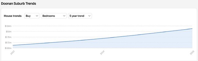 Over the past five years, the median house price has grown from $1.08 million to $1.82 million.