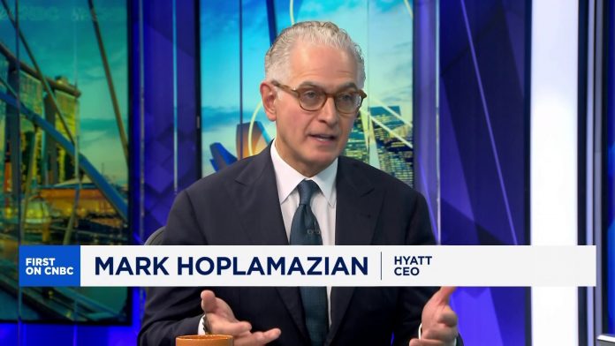 Mark Hoplamazian, CEO of Hyatt, discusses the hotel giant’s business in China, amid changing travel trends and a closely-watched US presidential election.