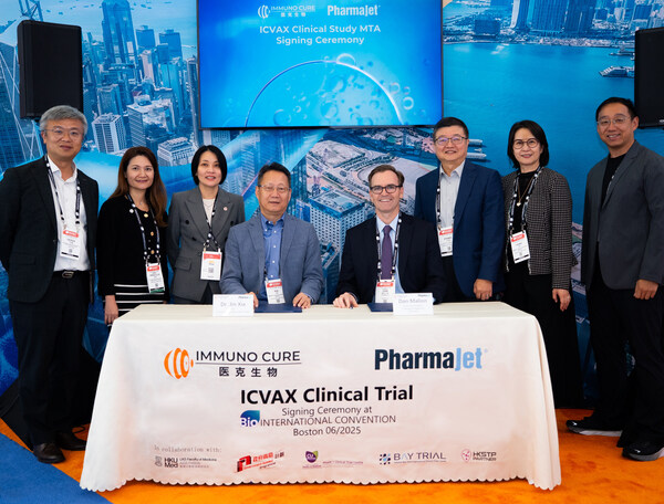 HONG KONG, June 19, 2025 /PRNewswire/ — Immuno Cure BioTech (“Immuno Cure“), a clinical-stage biotechnology group based in Hong Kong Science Park, is pleased to announce its upcoming collaboration with PharmaJet® to evaluate the safety and immunogenicity of HIV therapeutic DNA vaccine, ICVAX, delivered via PharmaJet’s innovative Tropis® needle-free injection system in a clinical study. On June 16, 2025, Immuno Cure and PharmaJet held a material transfer agreement (“MTA“) signing ceremony at the BIO 2025 International Convention in Boston, USA to commemorate such collaboration.
