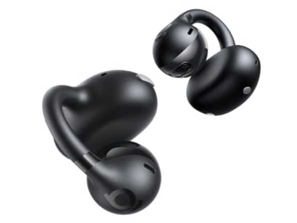 With a clip-on open-ring design, these earbuds rest comfortably outside your ear canal, making them a great pick for anyone who wears glasses, earrings or just hates the pressure of in-ear buds. Despite their lightweight build, they stay put, thanks to a tri-curve ergonomic clip, and their 12mm drivers actually deliver solid sound with clear highs and decent bass (thanks to a little AI boost). Add in IP55 water resistance, physical button controls (no awkward tapping mid-run) and four mics for clearer calls, and you’ve got an everyday pair of earbuds that work harder than they should for the money.