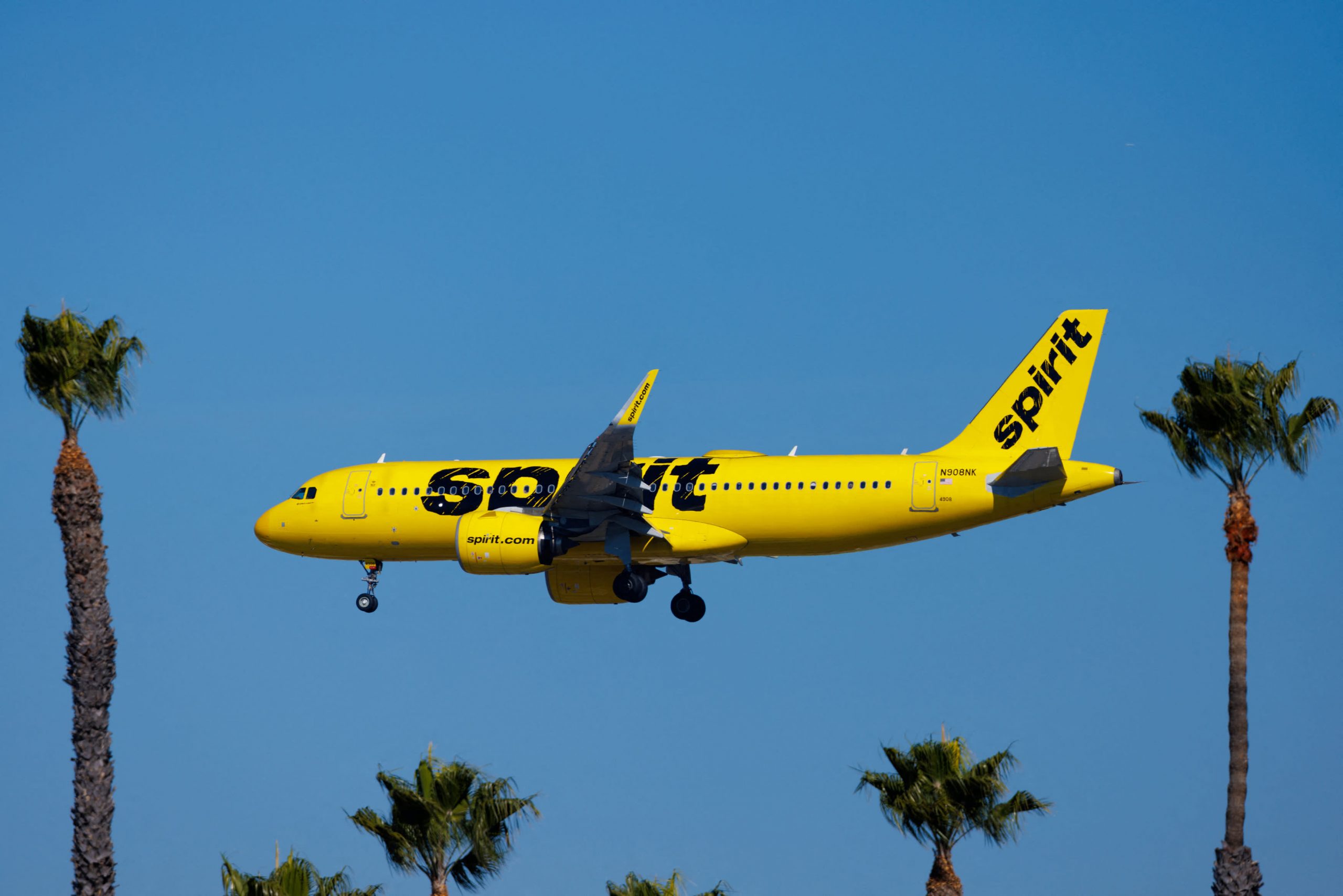 A Spirit commercial airliner prepares to land at San Diego International Airport in San Diego, California, U.S., January 18, 2024.